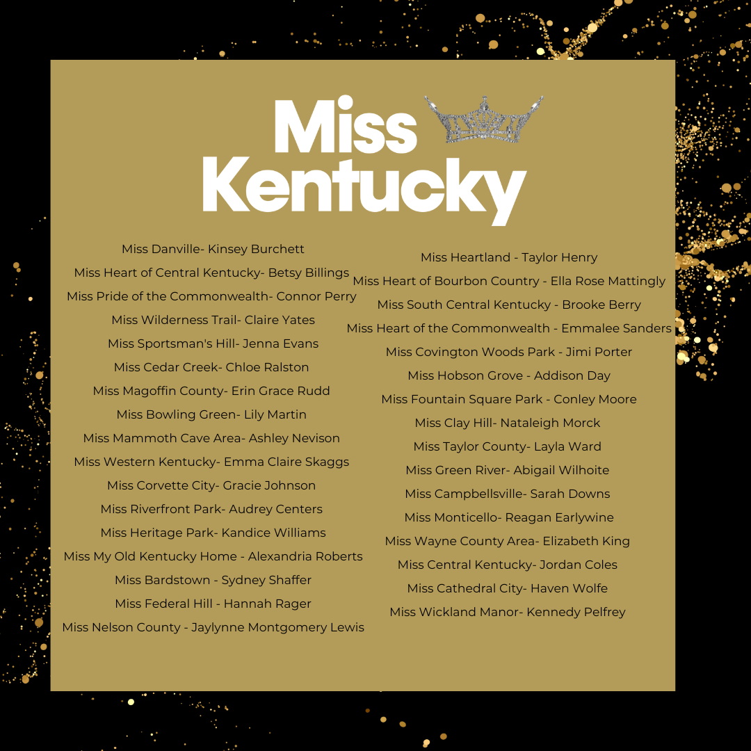 In accordance with Miss America rules and at the discretion of the Miss Kentucky Organization, fair & festival competition titleholders may participate in the state competition if they meet entry and eligibility criteria.